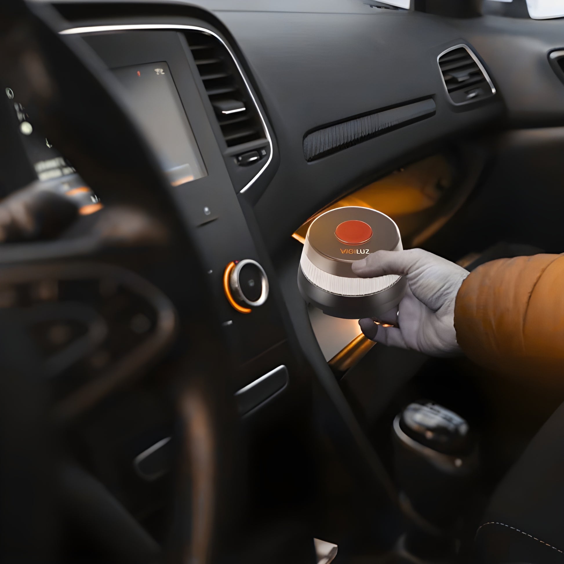 Olvídate de salir del coche en medio de la autopista para poner los triángulos. La Vigiluz V16 Connect es la solución definitiva para tu seguridad: homologada, conectada y legal.